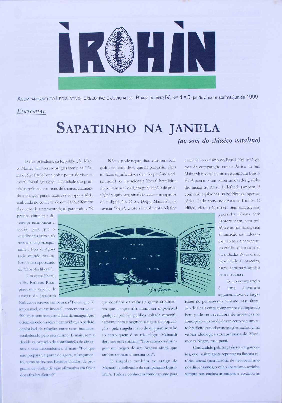 Nº 4-5 (jan-jun/1999) Voltar 13 de março de 2025 by Ìrohìn   Anexos n-4-5-janeiro-a-junho Metadados TítuloNº 4-5 (jan-jun/1999)Descrição"Acompanhamento Legislativo, Executivo e Judiciário" Publicação: ÌROHÌN - Periódico do movimento negro brasileiro Data/Edição: Ano IV, nº 4 e 5 (jan/fev/mar e abr/maio/jun de 1999) Local: BrasíliaGêneroTextual Continuar navegando Nº 3 (jan./fev./mar. 1996/97) Nº 6 (ago./set. 2004) Voltar para a lista de itens