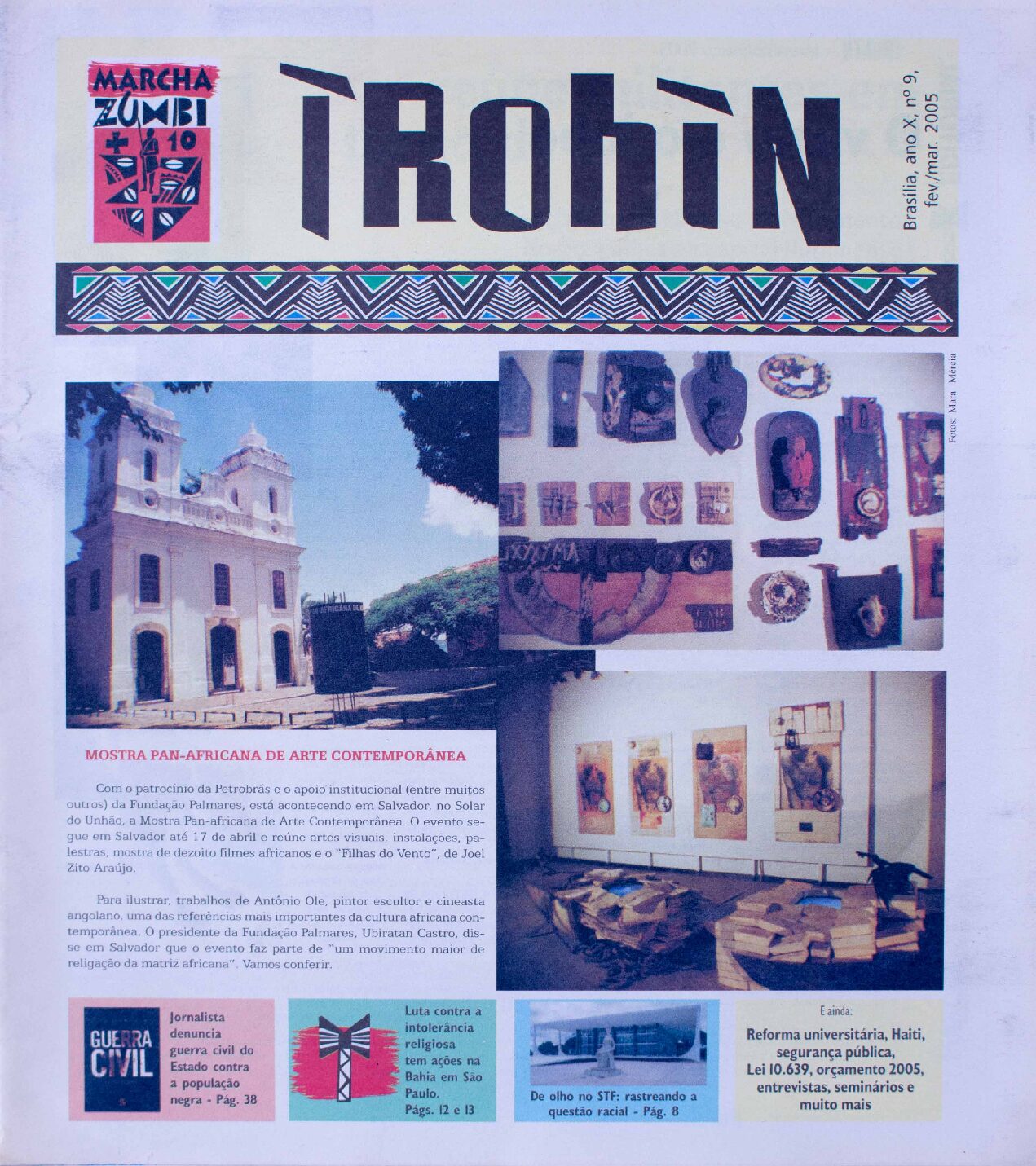 Este exemplar do periódico ÌROHÌN (nº 9, fev./mar. 2005) documenta atividades e debates relevantes do movimento negro brasileiro e da diáspora africana. A edição destaca:
